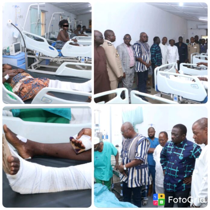 Au lendemain du drame, le dimanche 1ᵉʳ février 2026, une importante délégation des autorités administratives, régionales et locales s’est rendue au chevet des rescapés au CHR d’Atakpamé.