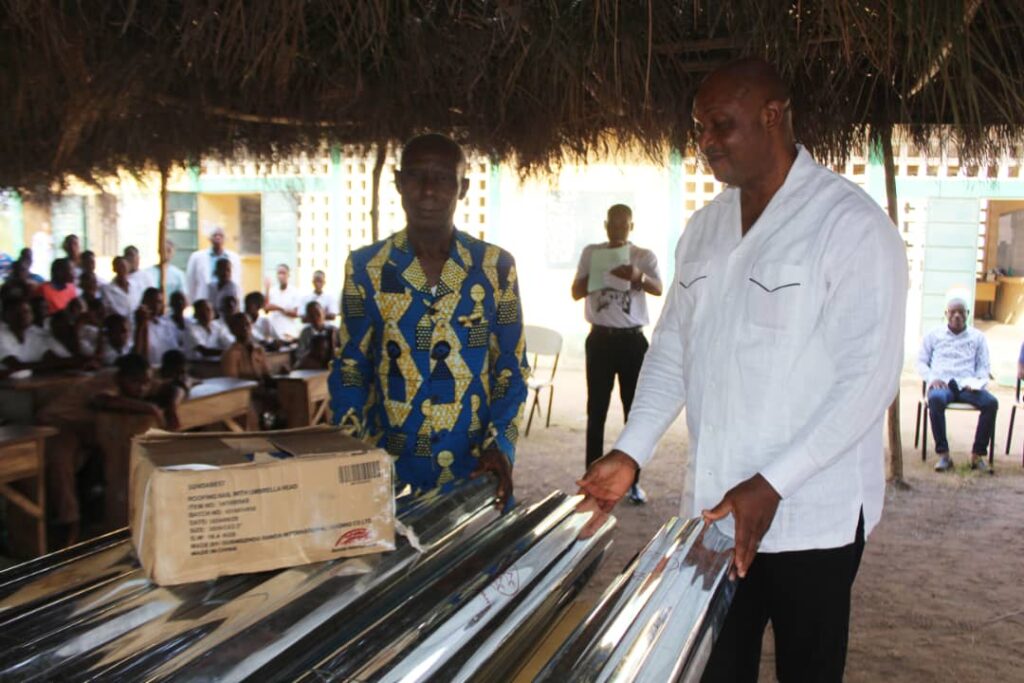 Cette action citoyenne a permis la remise d’un important lot de dons, composé de cinq (05) paquets de tôles, de pointes et d’une enveloppe financière.